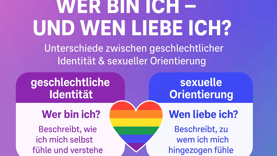 In queeren Gesprächen stolpere ich oft über dieselbe Verwechslung: „Also, wenn du auf Frauen stehst, dann bist du doch…?“ – Nein. Genau da liegt der Unterschied, den viele nicht auf dem Schirm haben: Geschlechtliche Identität und sexuelle Orientierung sind zwei verschiedene Dinge.